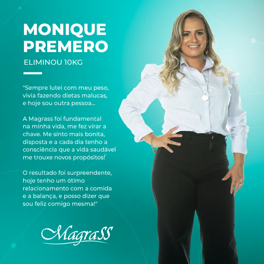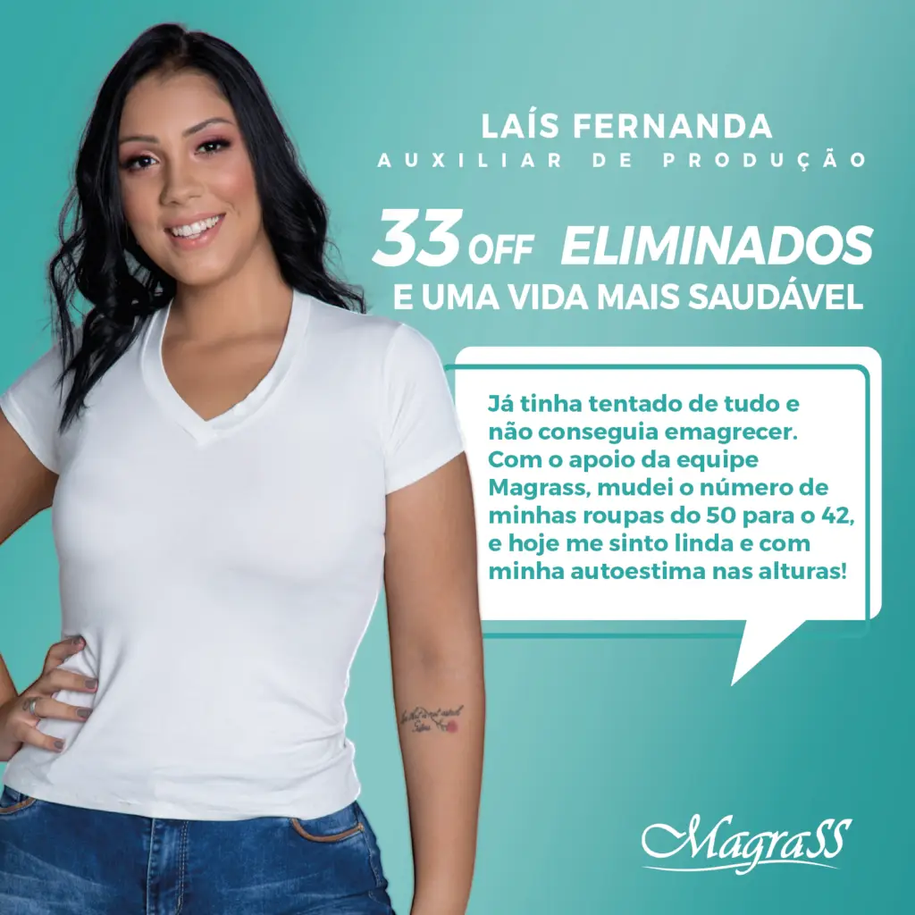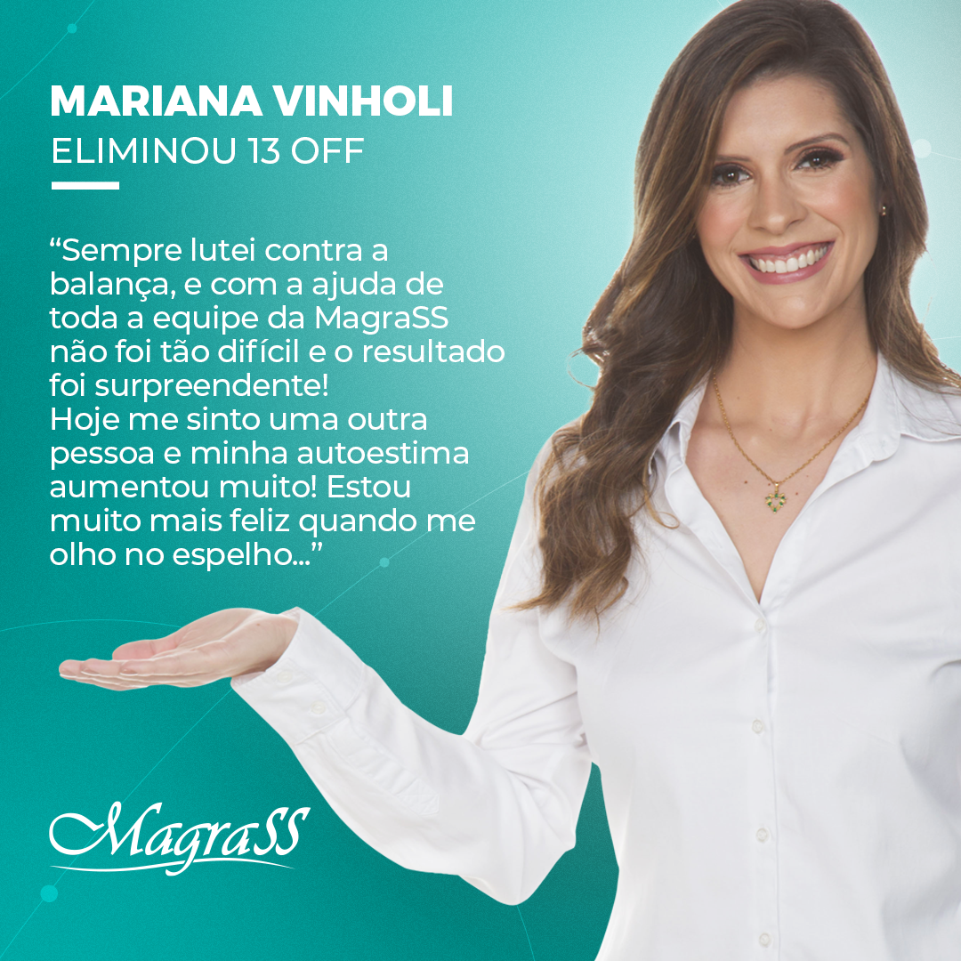 “Ganhei peso após a gestação, e não conseguia perder medidas de jeito nenhum. Graças a MagraSS consegui eliminar quilos e me sentir renovada cada dia mais.”