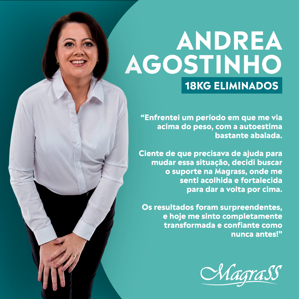 “As pessoas diziam muitas coisas! Ah, você nunca vai voltar ao seu peso ideal! Perdi 30kg. A equipe MagraSS é carinho e amor, e estou vendo o resultado que tanto almejava.”